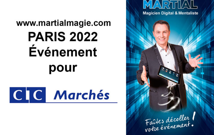 Une soirée fut organisée dans un centre de conférences à Paris avec une Animation magie digitale pour CIC Marchés à PARIS. Ainsi Martial magicien numérique a offert aux 200 invités une prestation exceptionnelle autour de la magie digitale. Par ailleurs Martial est également magicien mentaliste et intervient pour tous vos événements. Il se déplace dans toute la France.