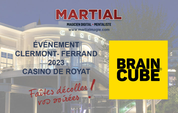 C’est au Casino de Royat que s’est déroulé une soirée pour BRAINCUBE. Magicien digital pour BRAINCUBE à CLERMONT-FERRAND avec Martial magicien mentaliste également pour vos événements. Ainsi, Martial est intervenu lors d’un dîner en présentant un programme varié mêlant le mentalisme et la magie numérique. Martial a intégré le digital dans son programme, c’est une prestation très appréciée des entreprises. Vous pourrez faire venir ce magicien partout en France pour animer un événement comme un séminaire, un congrès ou un salon professionnel.