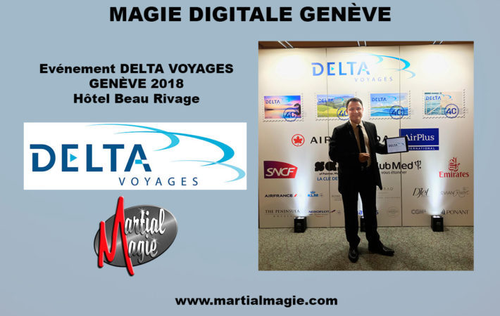 La société DELTA VOYAGES a réuni à l’hôtel Beau Rivage à Genève 200 clients et partenaires autour d’un cocktail dinatoire où le close-up en magie digitale s’est invitée pour un grand divertissement. Martial est un magicien numérique professionnel venu de Paris exclusivement pour les 40 ans de la société, une agence haut de gamme spécialisée dans les voyages. Ses performances ont ravi les convives en présentant diverses expériences interactives où la tablette s’est transformée en outil magique. Cette animation fut un énorme succès auprès d’un public international qui voyait cette nouvelle forme de magie pour la première fois. Nombreux ont participé et ne sont pas près d’oublier Martial un magicien digital moderne qui a fait évoluer l’art magique en y mêlant le numérique, un univers auquel toutes les entreprises aujourd’hui font appel pour se développer. Martial prend du plaisir à personnaliser son travail en intégrant des visuels pour faire apparaitre des objets en rapport avec la thématique de l’entreprise. La société étant dans l’univers du voyage, Martial a présenté une expérience au cours de laquelle il prédit une destination, un pays puis une ville et un mode de transport, le public était stupéfait par cette performance. La magie s’est bien renouvelée ces dernières années et les entreprises sont encouragées à contacter Martial qui leur proposera une animation adaptée à leur type d’événement, que ce soit pour des salons professionnels sur leur stand ou pour un congrès sur scène le show sera bien assuré. Rien de plus chaleureux que d’avoir un magicien dans une soirée pour bluffer ses invités. Les plus grandes entreprises ont fait appel à lui et ses vidéos démontrent bien une grande qualité de travail et une expérience de cet art qu’il a su renouveler. Il maitrise à merveille ses tablettes pour le plus grand plaisir de ses clients. Visitez son site internet et n’hésitez pas à le contacter, il fera de votre événement une belle réussite et un excellent souvenir pour tous.