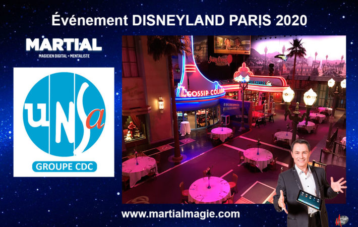 Belle soirée avec Martial et sa magie digitale à Disneyland Paris pour l’UNSA dans ce décor magnifique du Studio 1. Quelques 200 invités étaient conviés à cet événement dans les plus strictes conditions sanitaires mais placée sous le signe de l’émerveillement. Martial, magicien digital et mentaliste est intervenu de table en table afin de divertir les convives avec essentiellement l’utilisation de la tablette et des apparitions d’objets en tout genre dans la joie et la bonne humeur. Martial est un magicien numérique qui est sollicité partout en France faisant parti des quelques magiciens français qui ont intégré une magie moderne et performante autour du digital. Ce magicien close-up personnalise également ses numéros lors de lancements de produits sur des salons professionnels. Il intervient à domicile pour des fêtes privées et vous présentera un un show d’effets variés mêlant la magie, le mentalisme et le digital. Contactez ce magicien qui vous subjuguera avec des tours de magie totalement modernes et interactifs. Vous serez ravis par les performances incroyables de Martial. Ce magicien est très expérimentée et travaille pour les particuliers et les entreprises depuis 30 ans. La magie opère toujours sur tous les publics. N’hésitez pas à lui téléphoner il vous proposera une formule adaptée à votre événement.