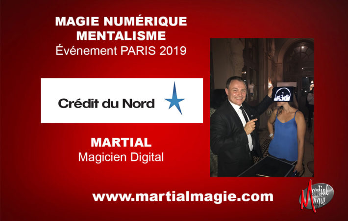 La magie numérique Paris fut une animation remarquée à L’Élysée Montmartre pour un événement organisé par la société Crédit du Nord. Martial est un magicien qui a développé la magie numérique Paris en utilisant des supports modernes tels que la tablette et le smartphone. Des objets apparaissent en passant du virtuel au réel. Voici une belle performance qui a séduit les 800 invités conviés à cette soirée. Le magicien est un acteur idéal pour surprendre et faire rire votre auditoire. Vous serez conquis par le professionnalisme et l’expérience de Martial magicien numérique Paris et professionnel depuis 32 ans au service des entreprises. Ce magicien voyage partout en France pour animer des séminaires, des congrès et des salons professionnels. Il propose une personnalisation sur vos produits en mettant en scène l’image de votre société. De nombreuses entreprises ont fait appel à lui pour des salons professionnels et des lancements de produits. La magie numérique Paris est une nouveauté dans l’ère du temps. Elle permet de moderniser l’art magique en utilisant les nouvelles technologies. Martial est un magicien de qualité qui saura adapter son spectacle à votre événement en vous proposant une prestation mêlant la magie, le mentalisme et le digital. Sa prestation est totalement interactive et fait participer vos clients et vos invités à travers des expériences époustouflantes. Ce magicien est issu des cabarets parisiens et vous serez à la fois impressionnés par sa magie mais également par son humour. Un grand moment de bonheur que vous partagerez sur votre événement, qu’il soit professionnel ou familial. Martial se déplace aussi à votre domicile pour un éventuel anniversaire, une fête entre amis ou un mariage. C’est l’occasion de faire plaisir à tous vos invités avec une magie rodée, efficace et percutante. Contactez ce magicien mentaliste qui met en valeur aujourd’hui aussi la magie numérique.